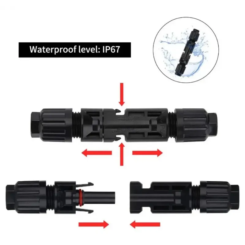 MC4 konnektörler, güneş paneli üreticilerinin büyük çoğunluğu tarafından panel çıkışında fabrika standartı olarak kullanılır. Kilitli mekanizması yanlışlıkla sökülmeyi önler, düşük temas direnci bağlantı noktasındaki ısınma ve kayıpları minimize eder.
